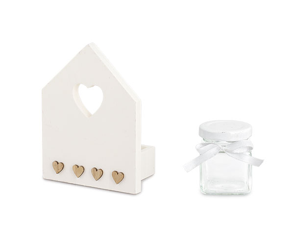 Bomboniera box legno casetta c/barattolo c/shopper cm.9,5x7x12,5