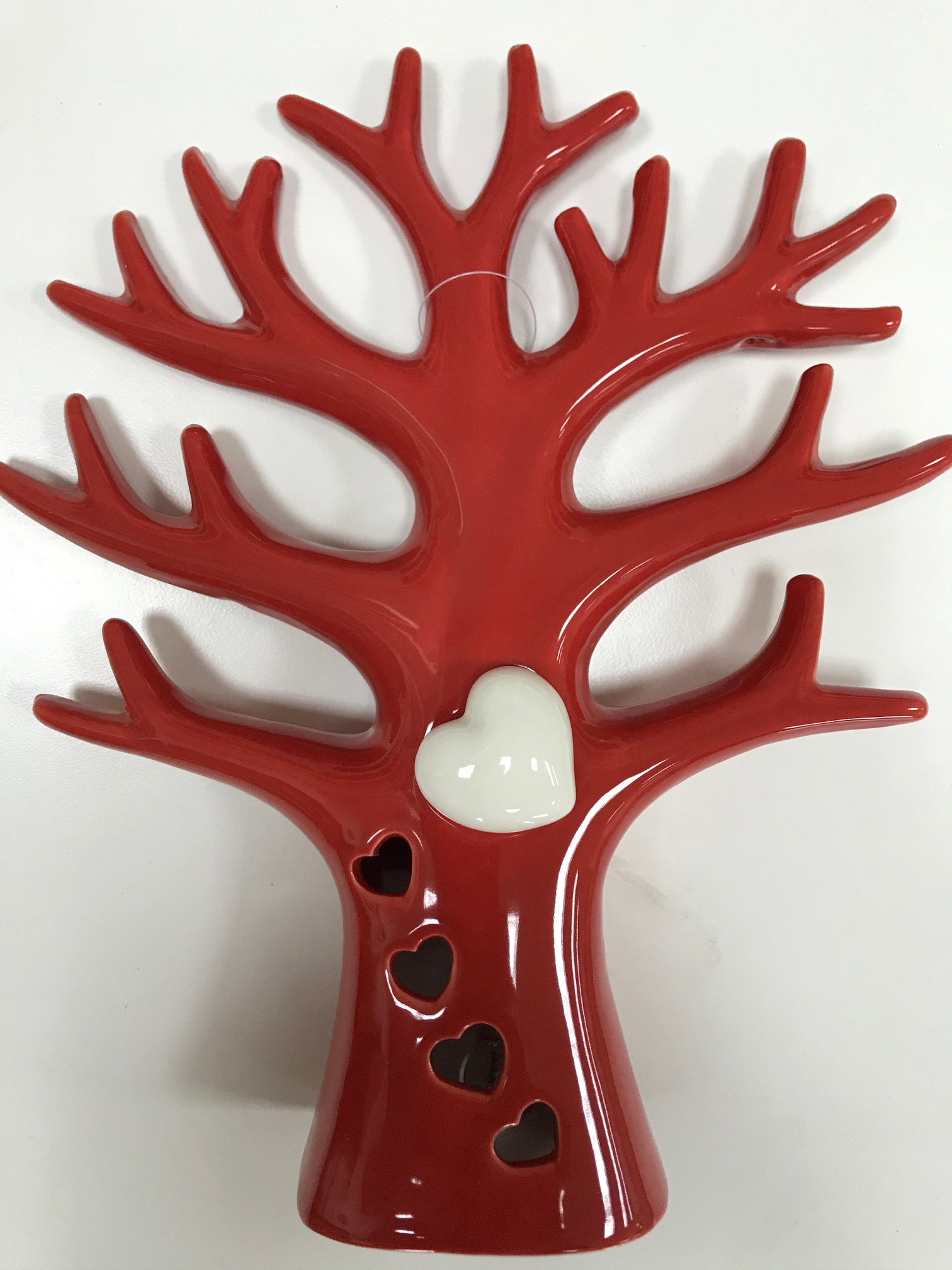 Albero della vita porcellana c/cuori c/led rosso cm.h20,5
