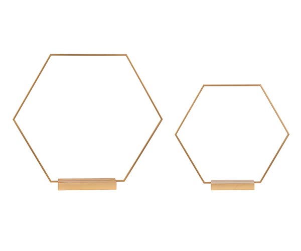 Struttura metallo esagoni s/2 oro c/base cm.69x63/cm.90x81,5