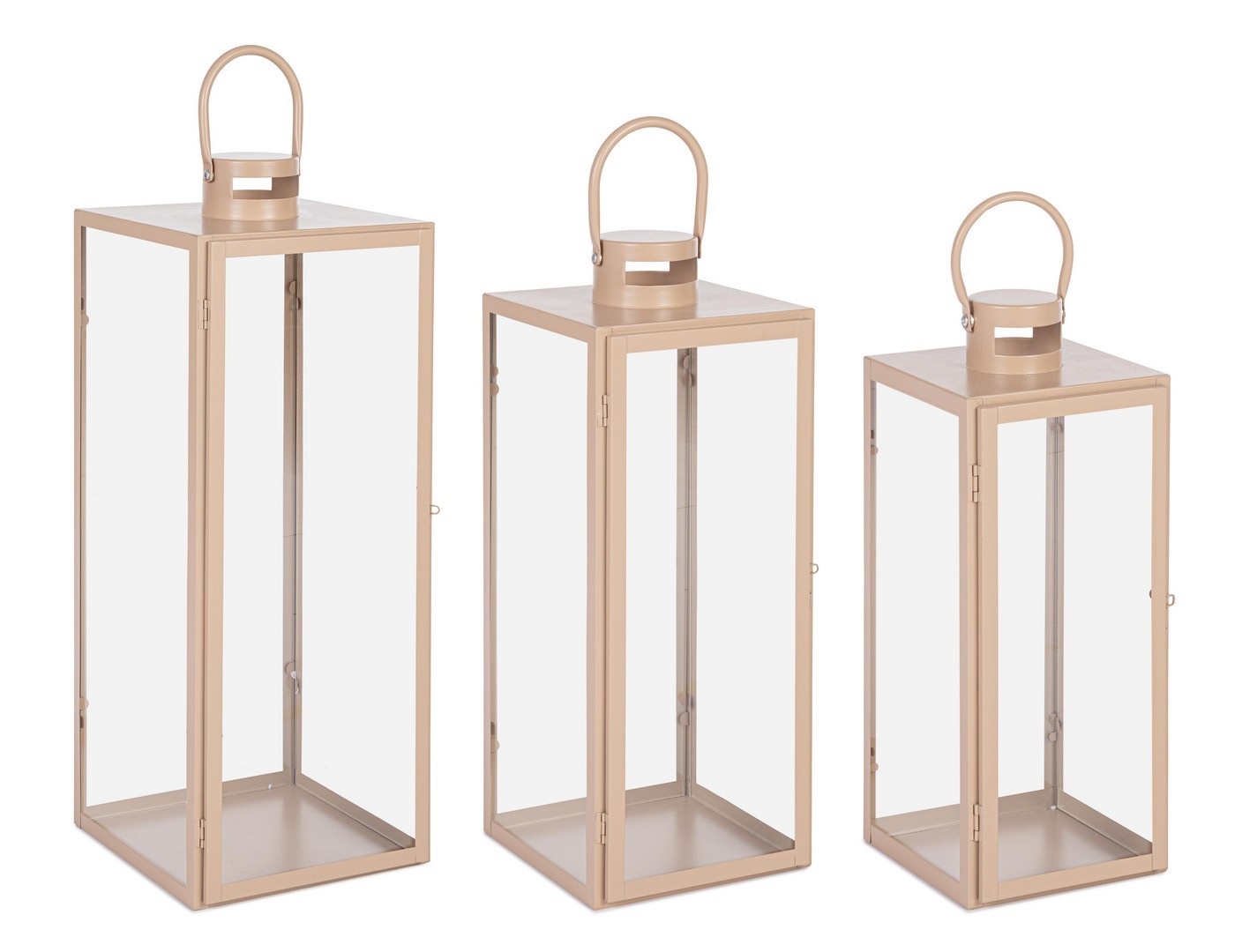 Lanterna set 3pz lior rettangolare beige p.cm.17x16x40.5 md.cm. 22x21x53.5 gr.cm.26x25x65