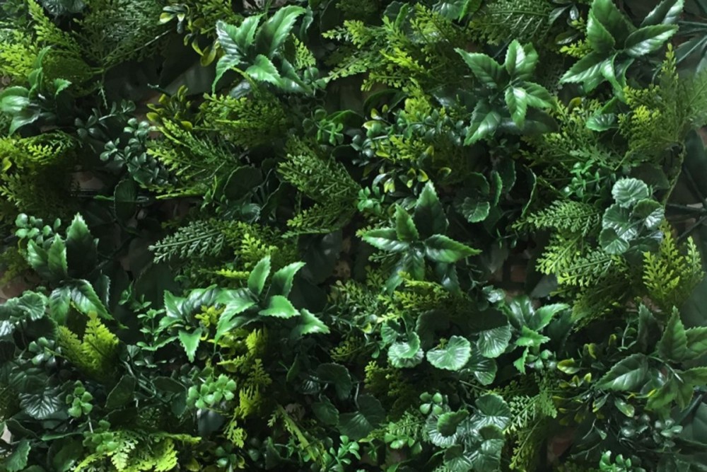 Pianta parete vegetale c/foglie verdi e mucchietti piante grasse cm.50x50