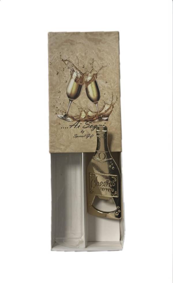 Bomboniera box champagne c/apribottiglia e porta confetti xm.,11x6x3