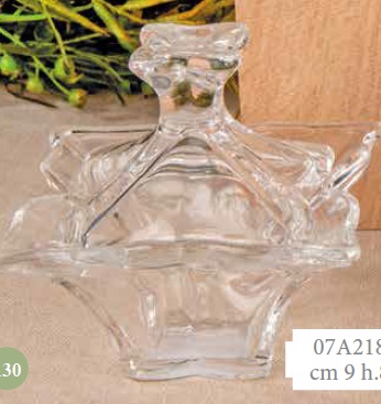Bomboniera scatola vetro 4 punte c/coperchio cm.9x8