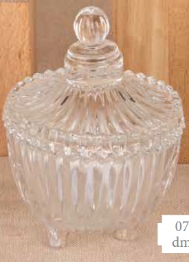 Bomboniera scatola vetro 3 piedi c/coperchio cm.7x9
