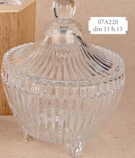 Bomboniera scatola vetro 3 piedi c/coperchio cm.11x13