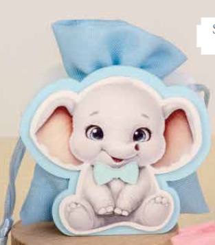 Bomboniera box elefante c/sacchetto cm.8