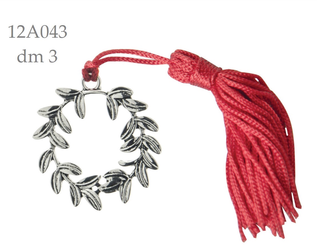 Applicazione metallo ciondolo laurea corona alloro cm.3