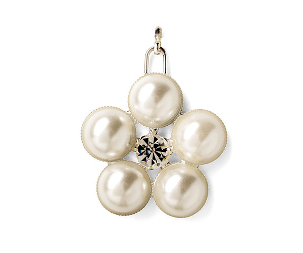 Applicazione metallo ciondolo fiore c/perla c/ strass cm.4