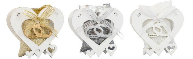 Bomboniera box legno bianco cuore doppio cm.5,5x5,5x5,5