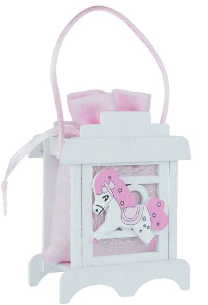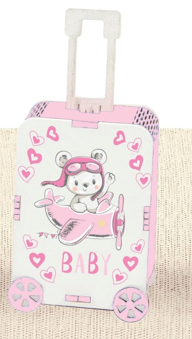 Bomboniera box legno trolley baby rosa cm.5,5x12
