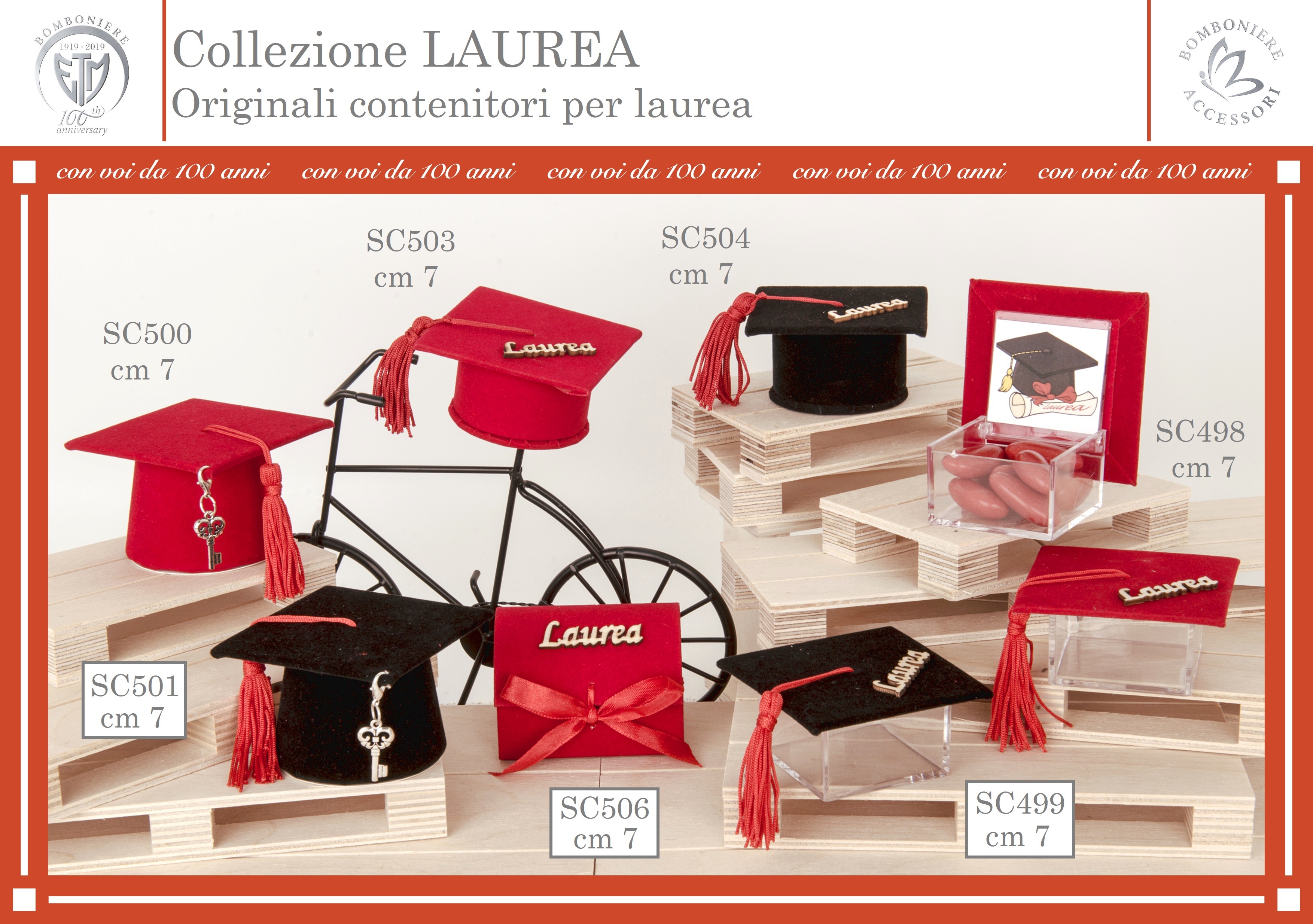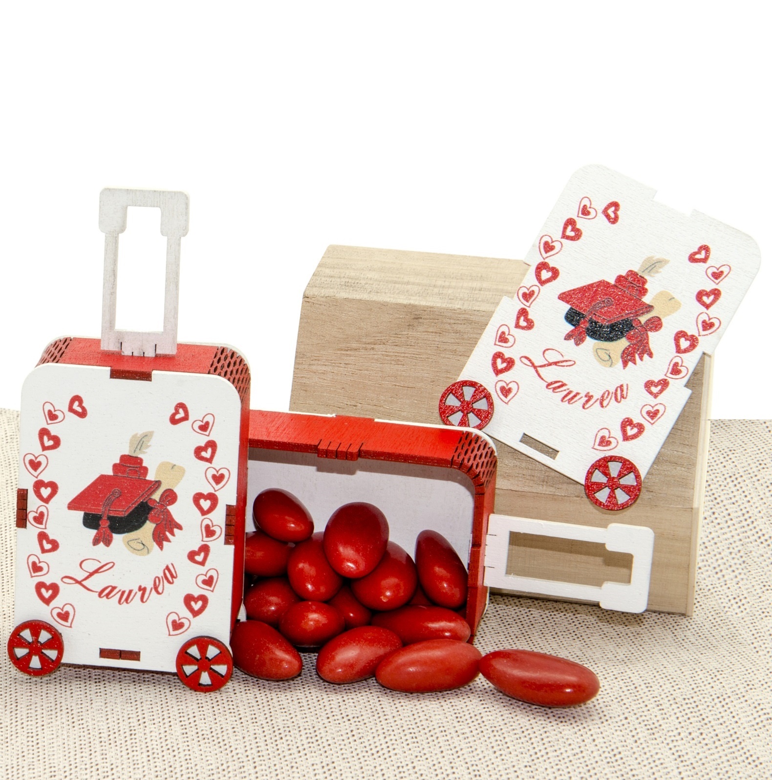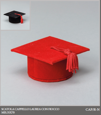 Bomboniera box laurea velluto cappello rosso c/ p.chiavi cm.8