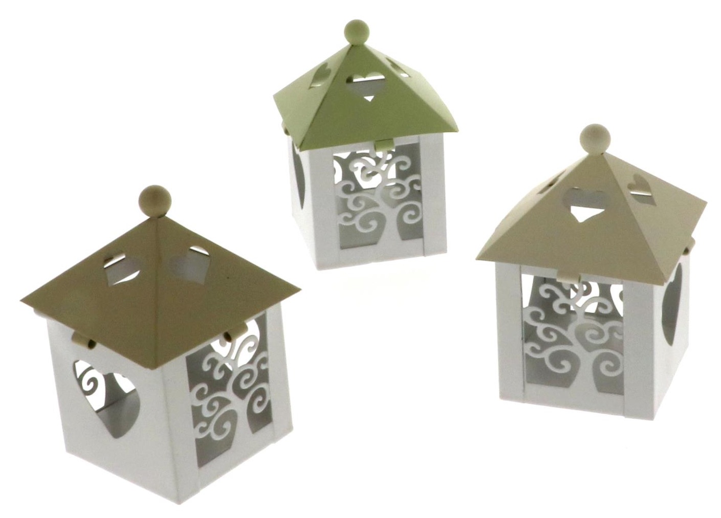 Bomboniera box metallo lanterna albero cuore set 3 pz cm.9