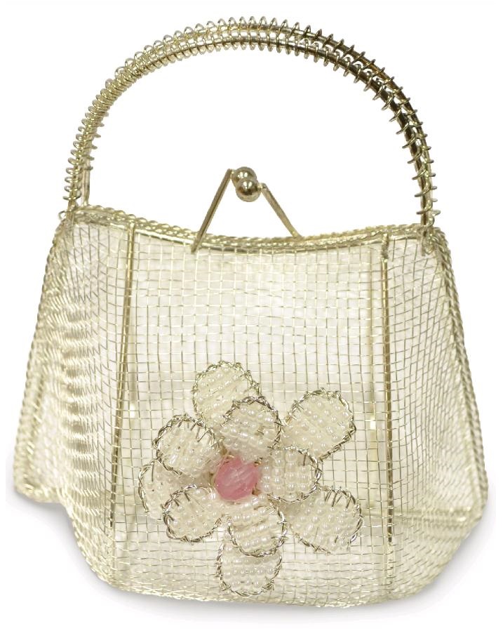 Bomboniera box metallo borsetta c/fiore metal silver cm.7,8x8x10
