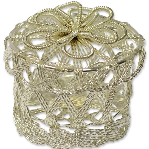 Bomboniera box metallo cesto ovale silver cm.8,5x6,5x4