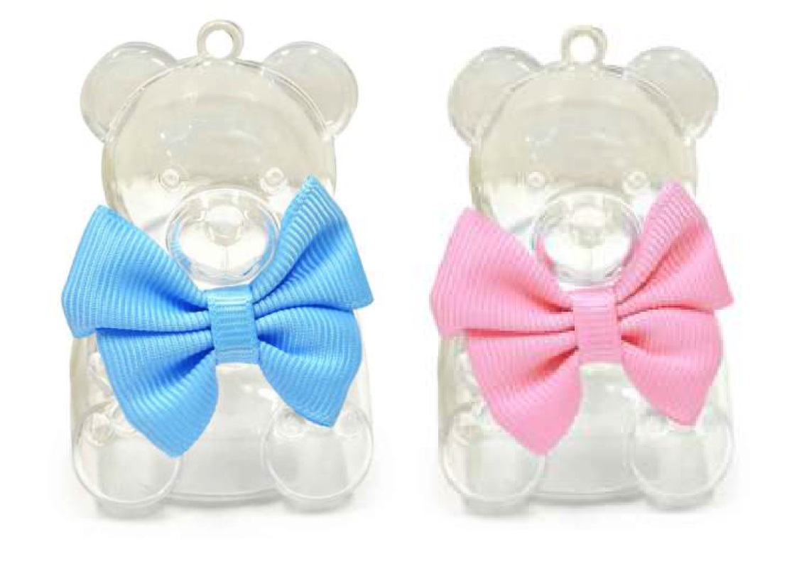 Bomboniera box plexiglas orsetto c/fiocco cm.7x5