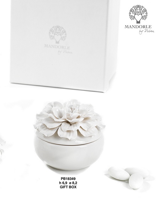 Bomboniera box porcellana fiore c/gift box cm.8,2x6,9