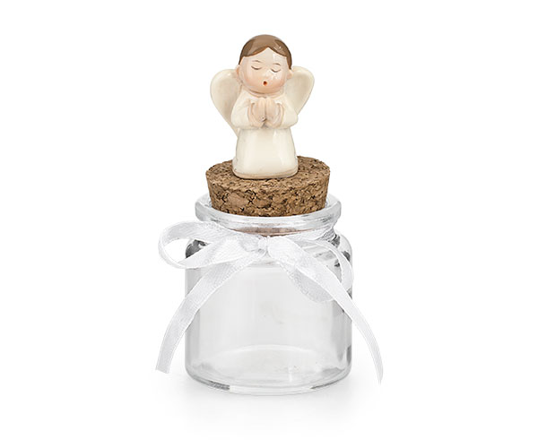 Bomboniera box vetro c/tappo sughero angelo resina cm.h10