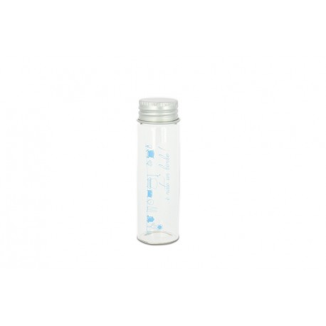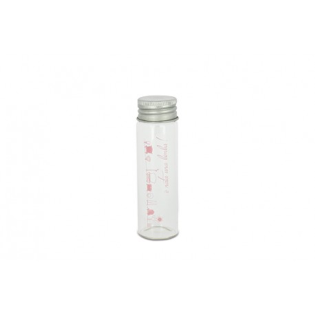 Bomboniera box vetro fiala c/tappo metallo cm.3x12 nascita