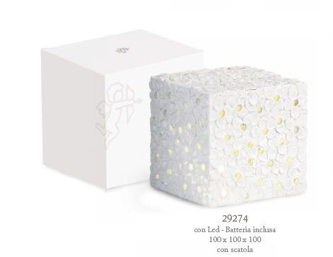 Bomboniera cubo fiori bianco c/led cm.10x10x10 c/scatola