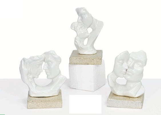 Bomboniera coppia visi in porcellana c/base cm.8,5x8,5x14,8 c/scatola 3 modelli ass.