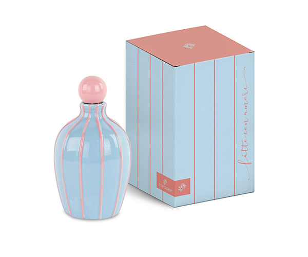 Bomboniera oliera celeste a righe in porcellana c/box cm.9,5x16,5