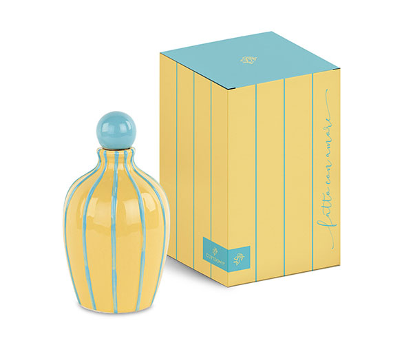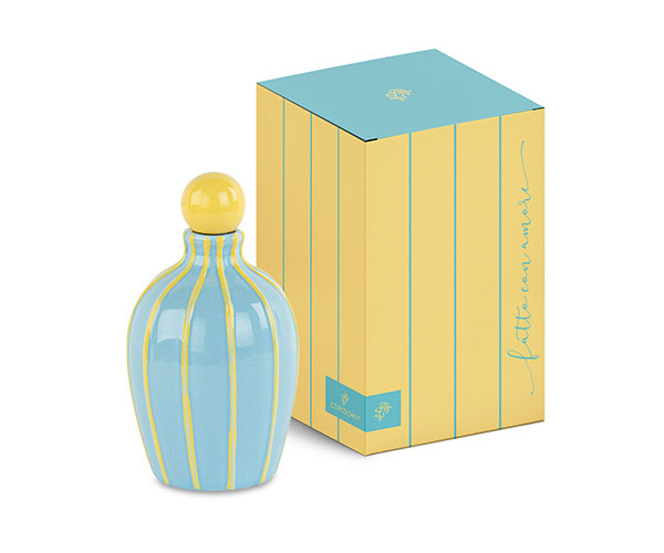 Bomboniera oliera gialla a righe in porcellana c/box cm.9,5x16,5