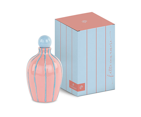 Bomboniera oliera rosa a righe in porcellana c/box cm.9,5x16,5