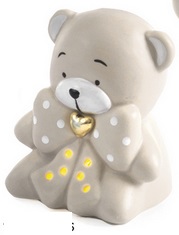 Bomboniera orsetto seduto in porcellana c/fiocco c/luce cm.7,5 c/box