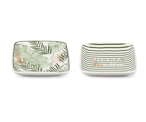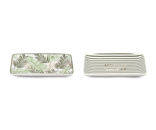 Bomboniera piatto foglie/righe ass.2 modelli cm.19x11,5