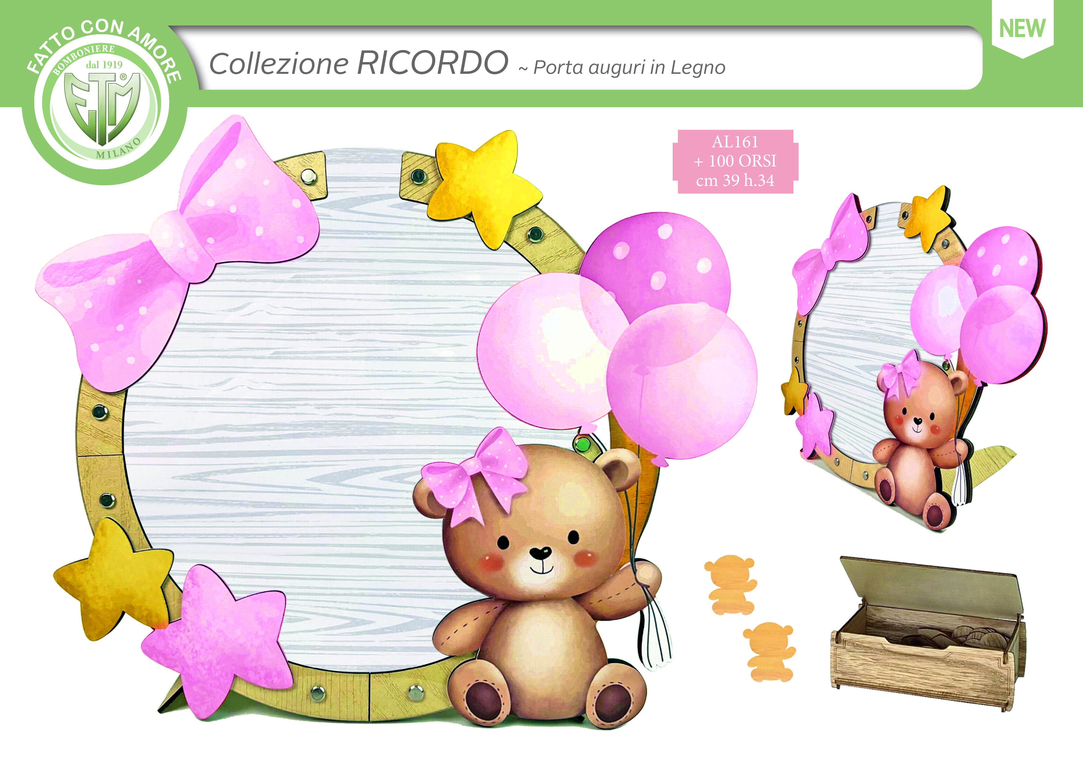 Bomboniera ricordo baby scatola c/tag cm.39x34