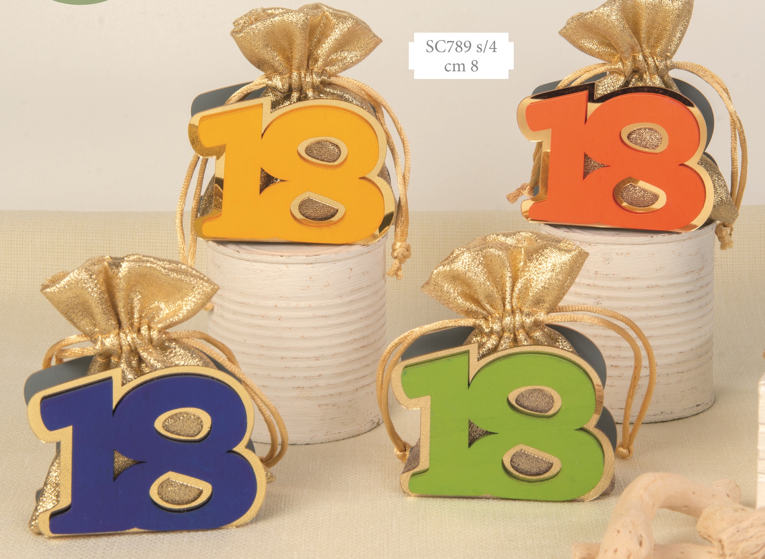 Bomboniera scatola c/sacchetto 18° ass.4 colori cm.8