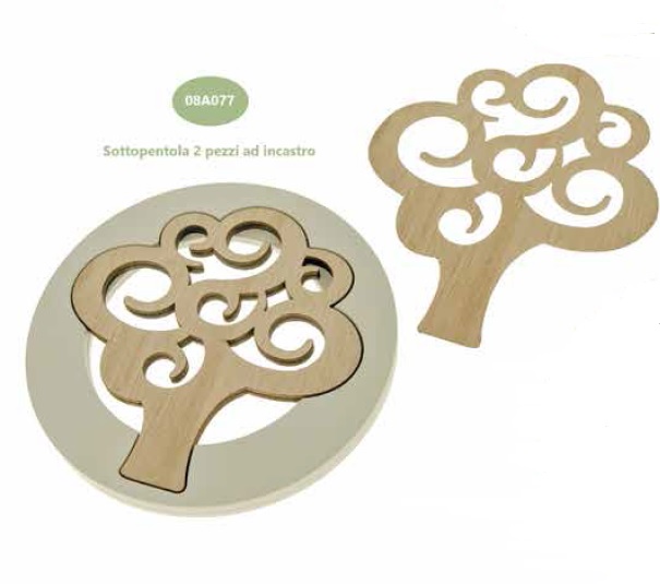 Bomboniera sottopentola in legno e ceramica c/dipinto naif 8 ass. cm.19x31 c/window box