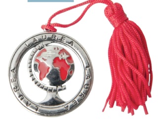 Bomboniera zama laurea cerchio mondo cm.4