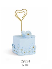 Bomoniera segnaposto azzurro c/fiori glitter cm.10