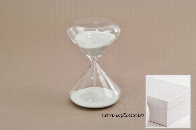 Bomboniera vetro clessidera vetro bianca c/astuccio cm.5xh8