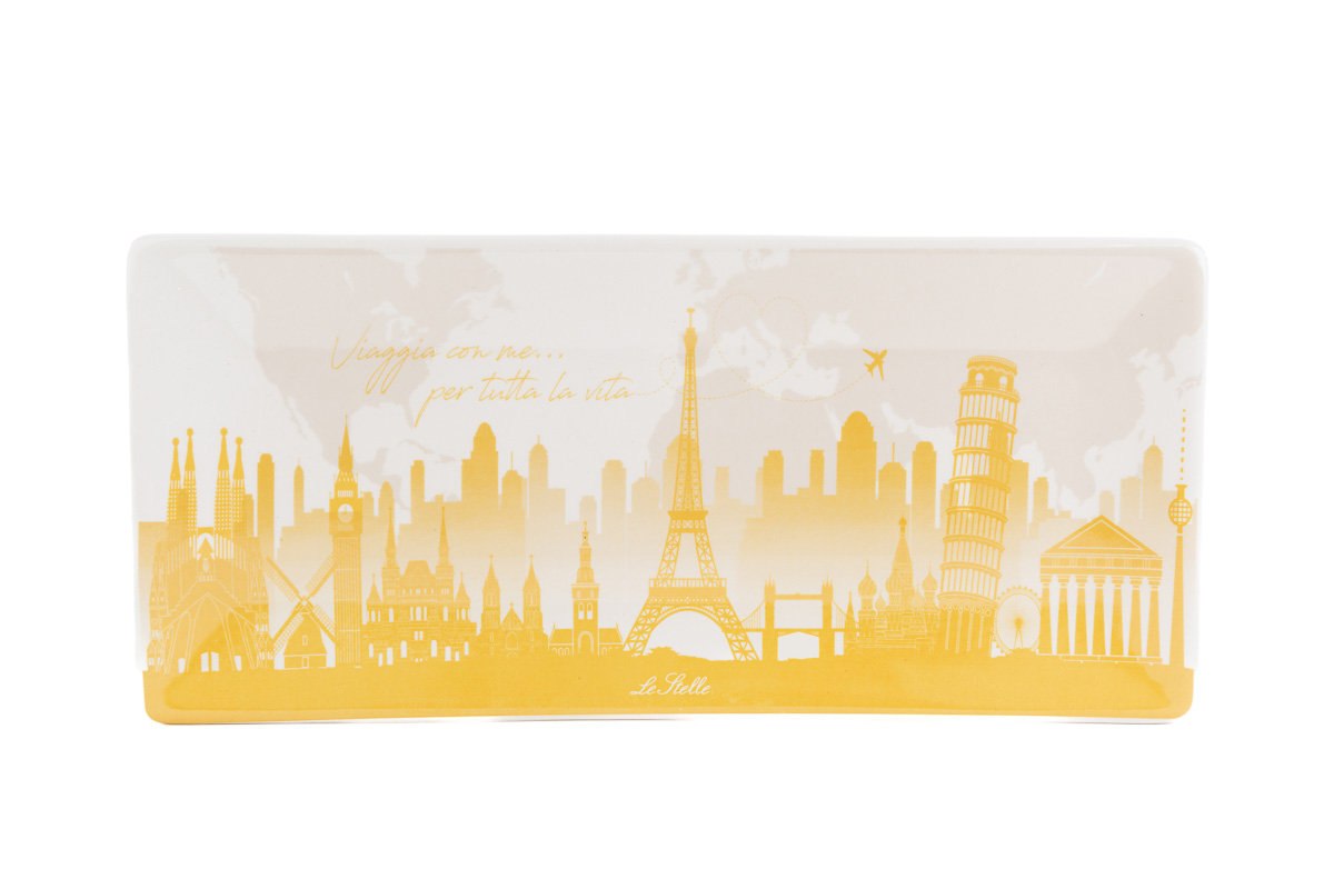Bomboniera vassoio in porcellana travel oflove cm.27,5x13,5 c/astuccio