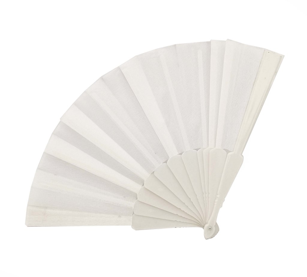 Bomboniera ventaglio plastica+stoffa cm.23