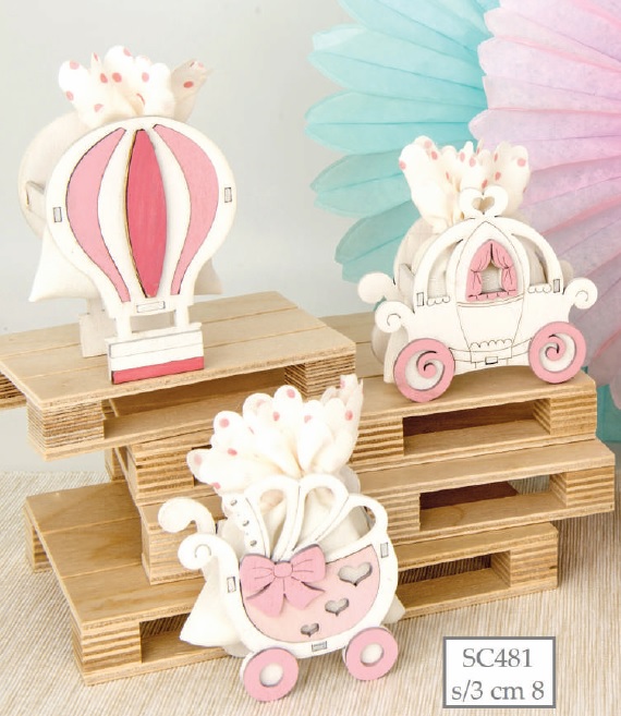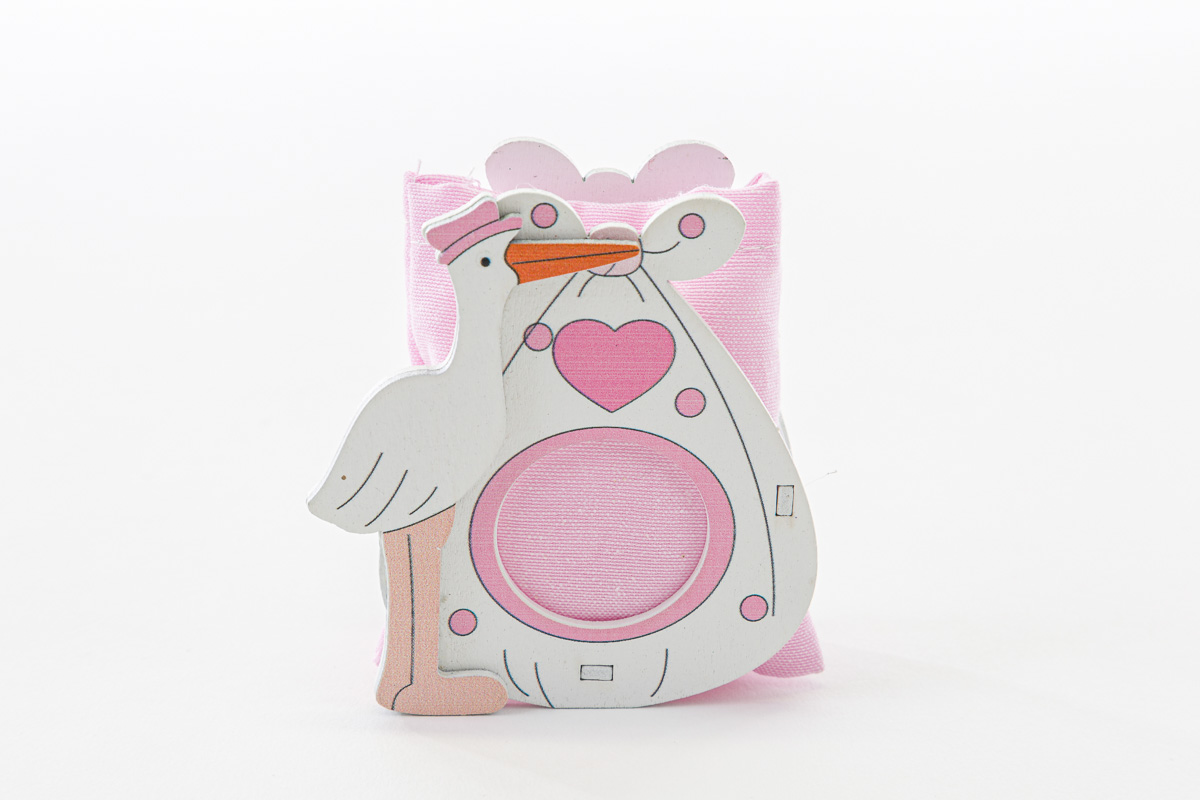 Sacchetto c/scatola cicogna legno rosa cm.6,5x3,5xh.8