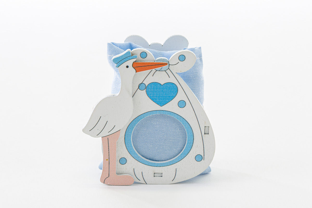 Sacchetto c/scatola cicogna legno celeste cm.6,5x3,5xh.8