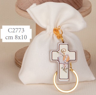 Sacchetto clip bag c/portachiavi cresima cm.8x10