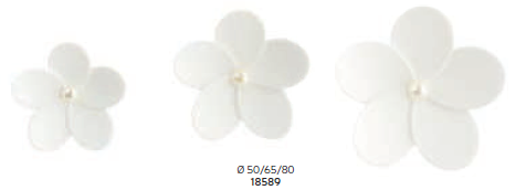 Applicazione fiore plastica c/perla set 3pz cm.5/6,5/8