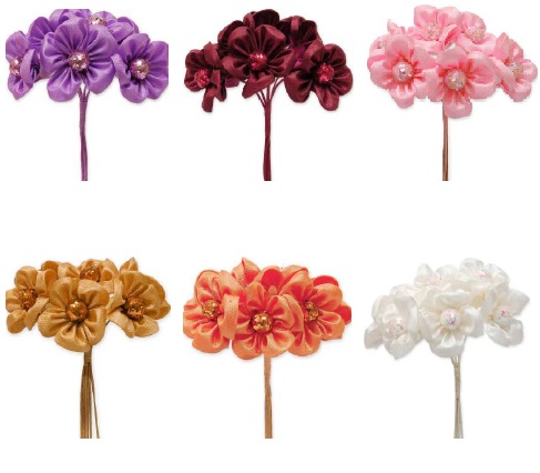 Applicazione fiore mini rosa in tessuto c/petalo in organza cm.4