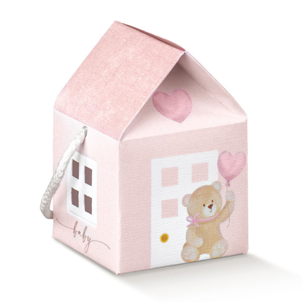 Scatola casetta c/cordini cm.8x8x8