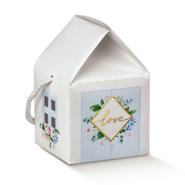 Scatola casetta c/cordini cm.12x12x11