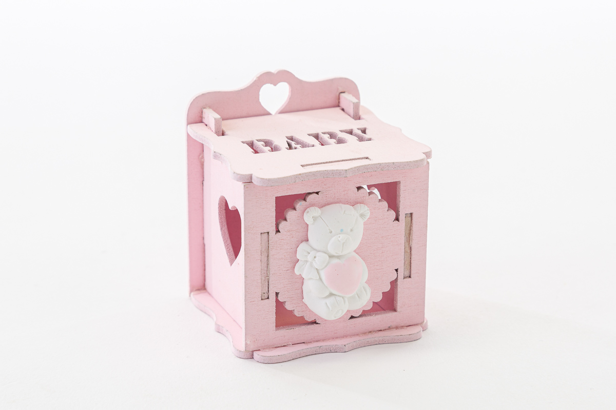 Scatola legno orsetto rosa cm.5,5x5,5xh.7