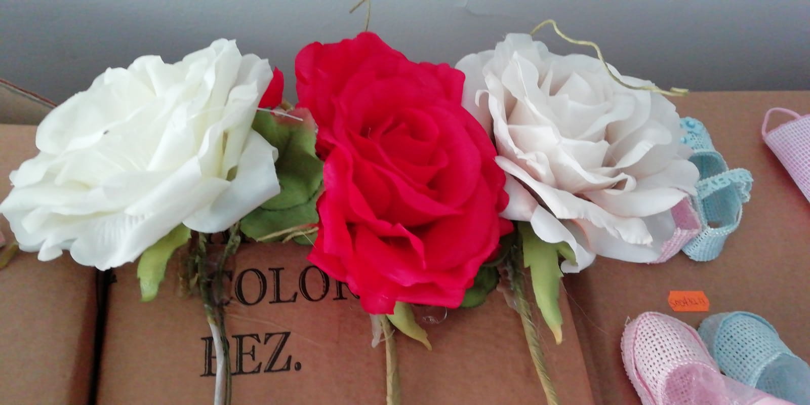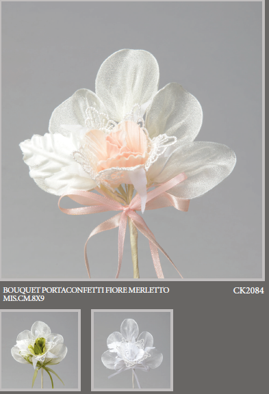 Applicazione fiore stoffa portaconfetti cm.11x16