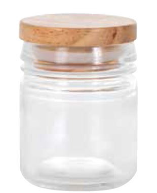 Vetro barattolo c/tappo legno cm.6,4x7,2 ml.90