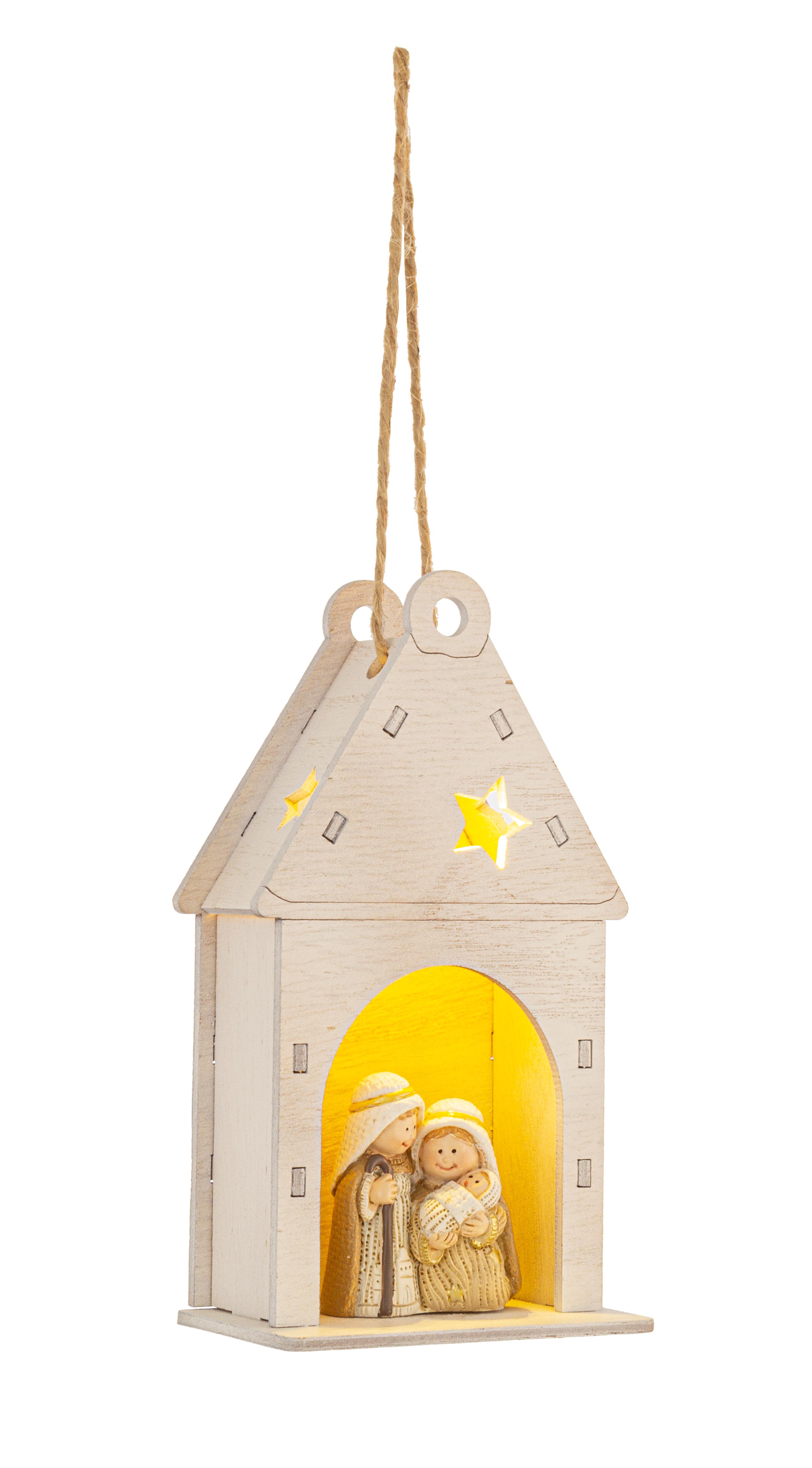 Natale pendaglio jane legno natività c/stella cm.7,8x5,2 h.13,8