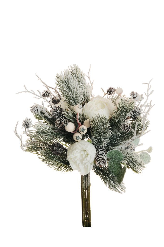Bush bundle innevato peonie, bacche, pigne, pino ed eucalypto x7 cm.36