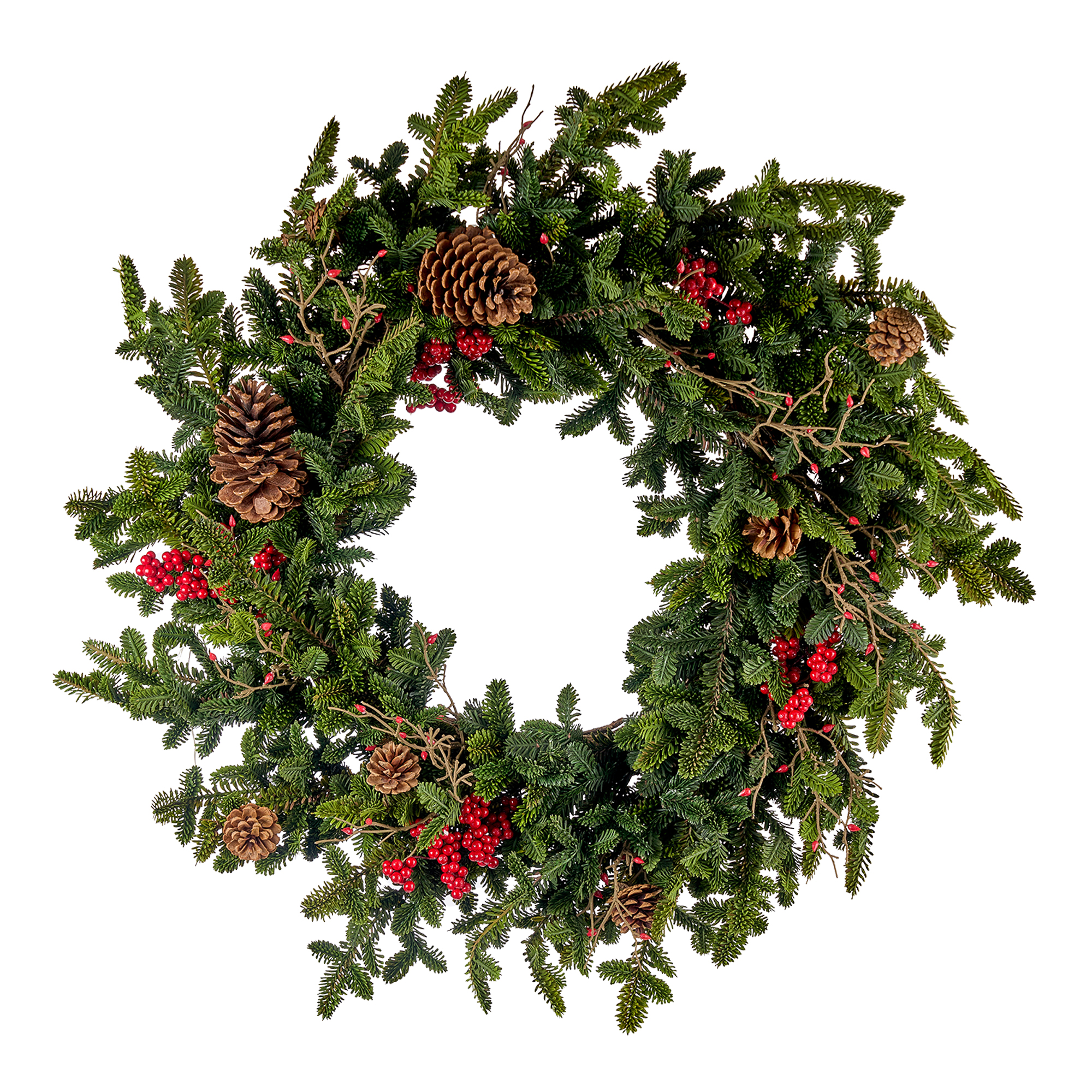 Natale corona di pino in gomma morbida c/bacche cm.int32 est.60